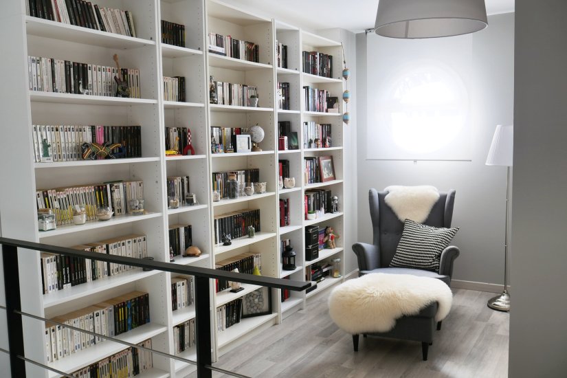 Mes travaux étant enfin terminés, je peux enfin vous montrer ma nouvelle bibliothèque maintenant !