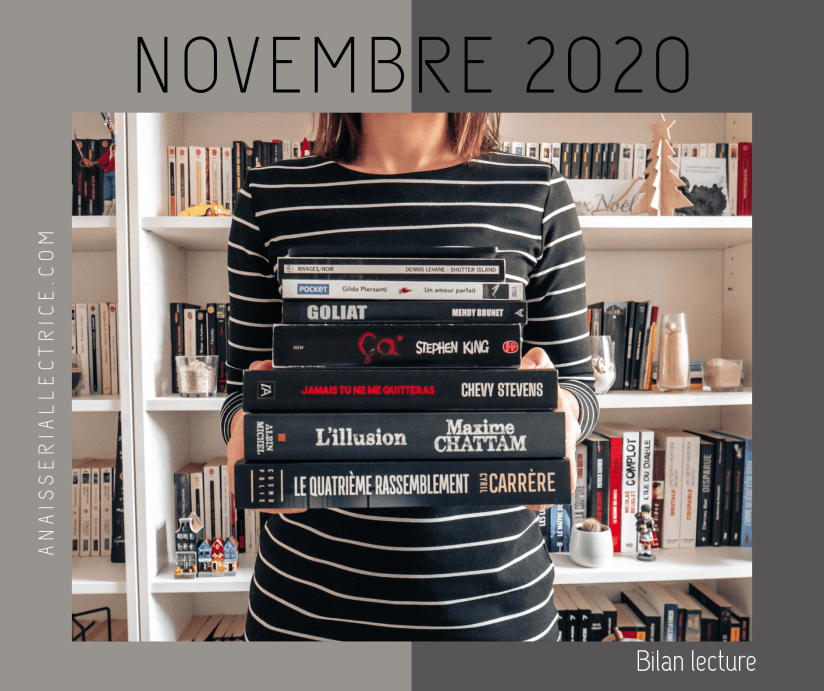 Novembre, mois officiellement le plus déprimant de l’année, s’achève enfin. C’est déjà pas la joie habituellement alors cette année avec le nouveau confinement et l’impossibilité de sortir se divertir dans les bars, restaus et dans des repas de famille ou avec des potes… Du coup on fait quoi quand on déprime ? On jardine, on cuisine, on bricole, on picole et on lit ! Un bon mois de lecture vient de s’achever pour moi, je reste dans ma moyenne avec 8 romans lus dont certains avec une taille relativement honorable…